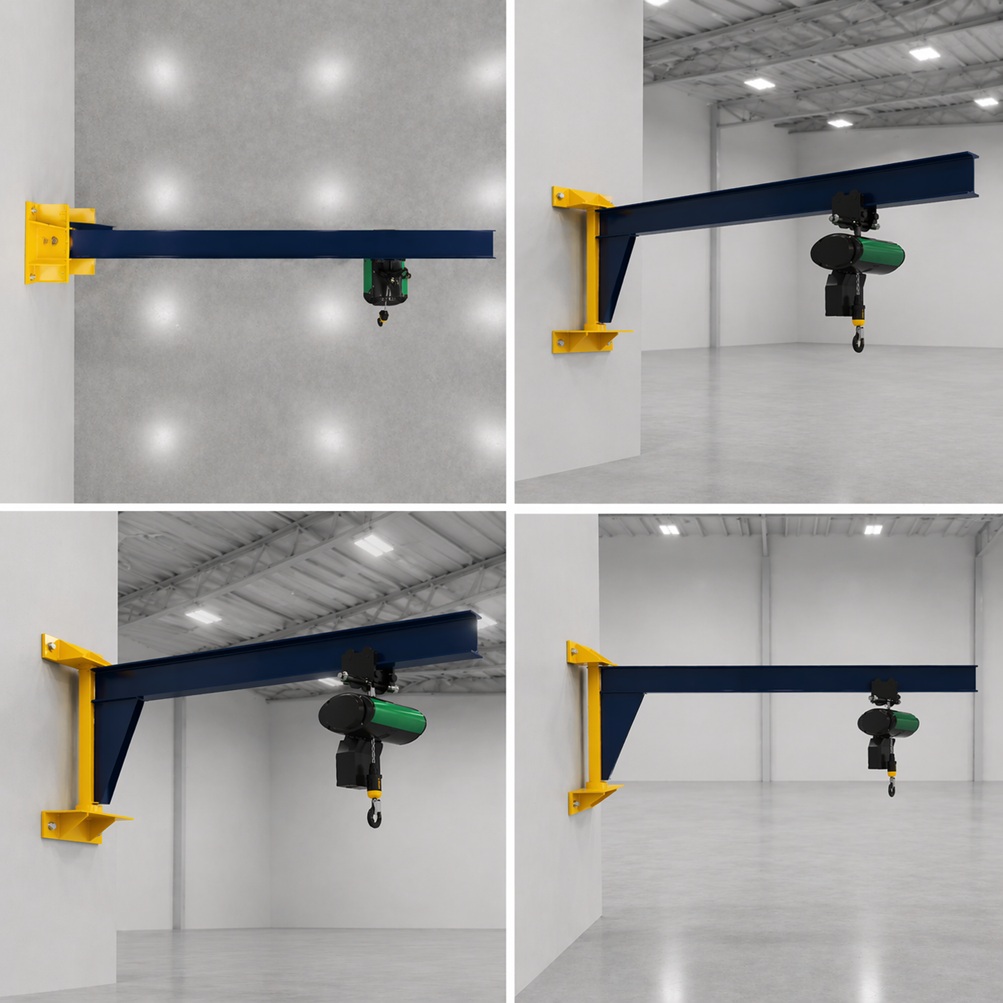 Alttan Destekli Duvar Tipi Pergel Vinç, duvara monte edilerek çalışan ve kol altı destek sistemi sayesinde daha yüksek yük kapasitelerinde kullanım imkanı sunan bir vinç türüdür. Alt destek konstrüksiyonu, kol üzerindeki yük dagılımını dengeler ve daha uzun kol boylarında güvenli çalısma sağlar. Özellikle dar alanlarda yer tasarrufu saglayarak verimli kullanım sunar. Genellikle fabrika ve atölye ortamlarında tercih edilen bu sistem, sağlam yapısı ile uzun ömürlüdür.